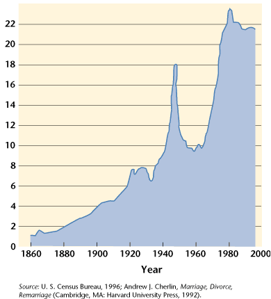 Процент развода в США складывается таким высоким потому что женщинам было дано такое юридическое право (как доказано на диаграмме). Среднестатистический брак в Америке сегодня видоизменился в двуглавое чудовище, поскольку женщины больше не желают подчиняться своим мужьям.