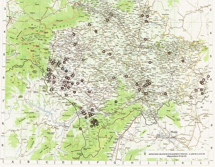 За пределами Косово на территории Сербии урановые боеприпасы использовались в Пчиньском округе, расположенном между Косово, Болгарией и Македонией, а именно в општинах Буяновац и Прешево, где большинство населения в том время также составляли этнические албанцы (в Прешево и по сей день 89% жителей — албанцы).