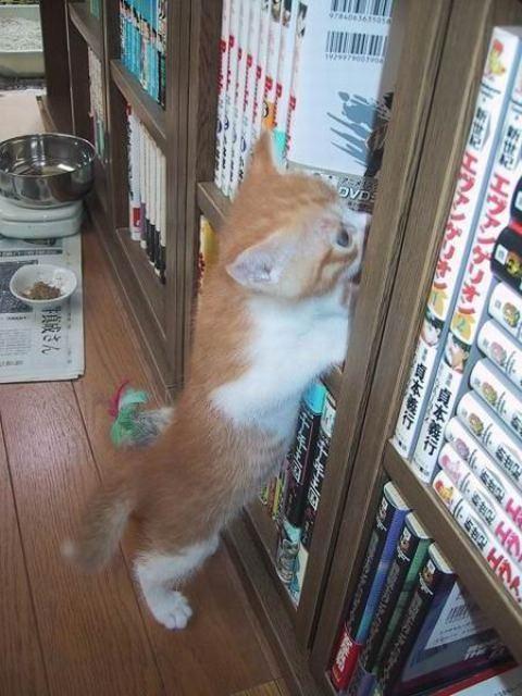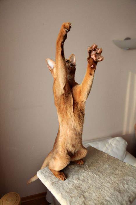 Также, есть способ напугать кошку. Хвостатые мурлыки являются хищники среднего уровня, а такие животные, как койоты, лисы, и даже некоторые хищные птицы могут охотиться на них. Таким образом, инстинкты вынуждают охотиться на маленьких и бояться больших. Специалисты говорят, что нависание над кошкой, делая себя больше, в ее глазах выглядит очень угрожающе.