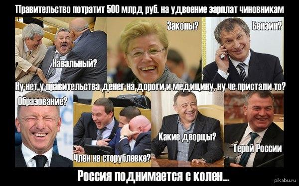 Не менее удручает, что зарплата чиновников, да и тех же руководителей Гос.корпораций, депутатов, всех кто на содержании у народа, абсолютно не зависит от итогов их руководящих трудов - благосостояния и уровня жизни этого самого народа. Владимир Владимирович как-то на подобный вопрос на одной из встреч о высоком содержании этой публики, почему то тут же начал сравнивать и приводить пример зарплат зарубежных руководителей, что дескать если зарплата будет меньше, то у нас и руководители, топ-менеджеры, чиновники, будут не мирового уровня. Довольно странная логика и доводы, ну да Бог ему судья, хотя хотелось бы чтобы и в перспективе Гаагский трибунал не обошёл его вниманием.
