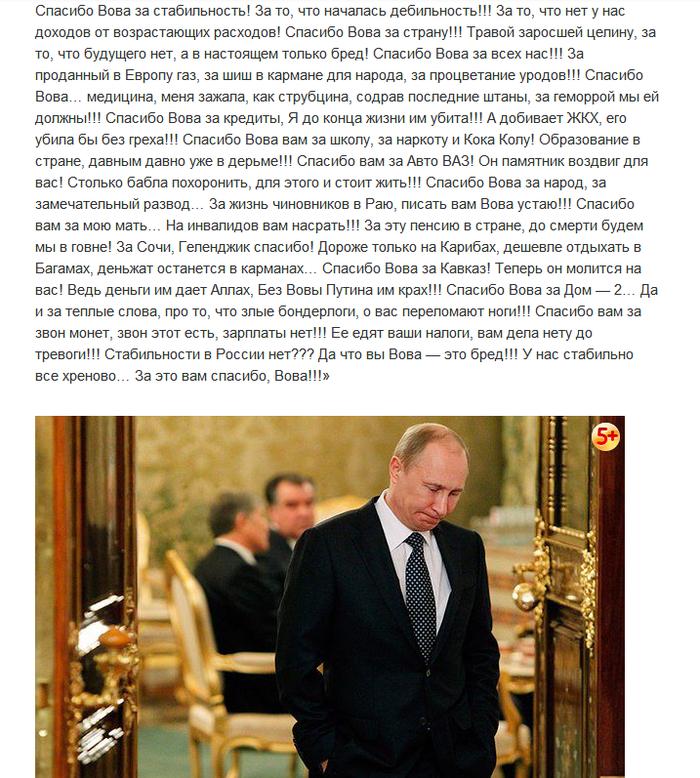 А взятки и воровство на высшем уровне,падение уровни жизни людей,невыплаты запланированой индексации пенсионерам,продолжение либеральной сущности экономики правительства Д.Медведева,одобренное Путиным-это всё не главное?