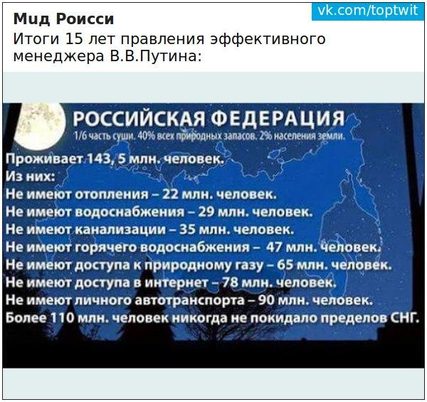 Диктатор Путин у аХтора пчелой мёд таскает, да только не для России и её народа, а для себя с дружками. А для нас - экономика в рецессии, уничтоженные производства, сельское хозяйство, наука с образованием, здравоохранение, процветающая безработица, нищета и смертность. Это всё подтверждается статистическими данными.
