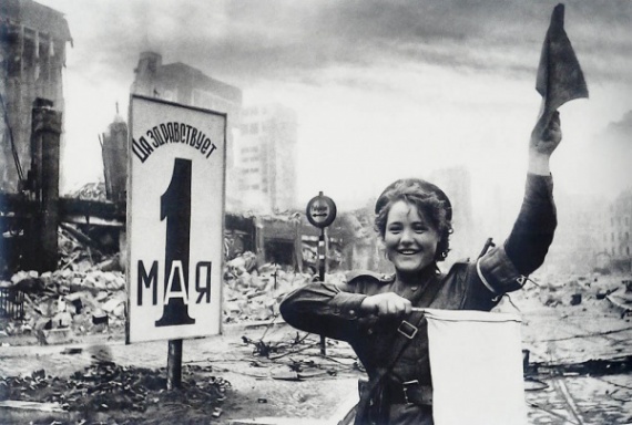 Две советские женщины идут по площади Павших борцов в Сталинграде. 1943 год. Автор: Эммануил Евзерихин