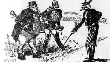 В 1823 году тогдашний президент Америки Монро в послании к членам Конгресса заявил, что любые попытки европейских стран вмешиваться в дела западного полушария будут рассматриваться как угроза безопасности США. То есть кровавая Европа с ее войнами не будет желанной гостьей в окрестностях Америки. Мы держимся в стороне от ваших дел, заявил Монро старому Континенту, и надеемся, что вы будете держать подальше от наших.