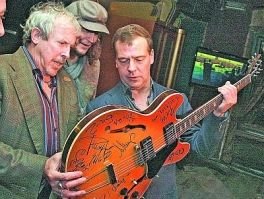 Почему люди во всем видят происки политиков и ещё что-то подобное?? А Медведев, я думаю, просто получил удовольствие от общения с интересными людьми!!! я бы, например, тоже не отказалась с ними поболтать))) да ещё и гитару презентовали (вроде "Гибсон"?) - вообже клондайк!!!