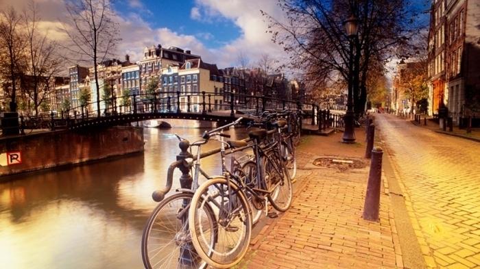 Рот Бруг, Утрехт, Нидерланды. Метко названный «Рот Бруг» (буквально: «Красный мост») мост элегантно проложен через реку Вехт в районе улицы красных фонарей в Утрехте.