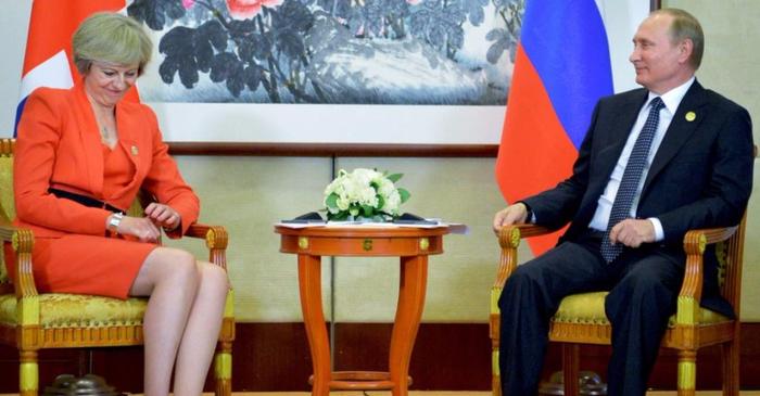 Премьер Великобритании Тереза Мэй "забыла" подать руку президенту РФ В. Путину на встрече в китайском Ханчжоу накануне открытия саммита G20.