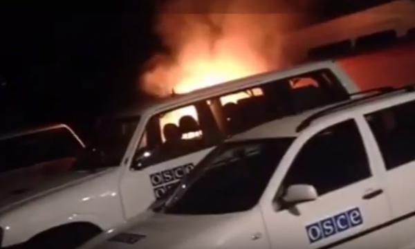 Сообщается, что инцидент произошел ночью 6 сентября. Неизвестный бросил в припаркованные на ночь автомобили миссии ОБСЕ «коктейль Молотова».