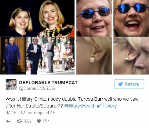 Подобные посты в соцсетях сопровождают хештегами #HillarysBodyDouble и #IsHillaryalive.