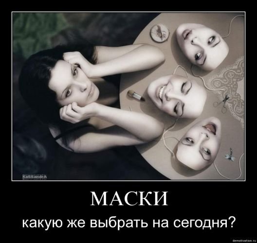 Женские маски, повторяющиеся последовательно, непоследовательно, но изо дня в день, автоматизируются; переходят постепенно на уровень обыкновенных навыков и экспрессируются (выражаются) как уже нечто обиходное, само собою разумеющееся, устойчивое в женском Я – бытии. Вот почему многим мужчинам особенно следует быть осторожными и обязательно остерегаться делать поспешные оценки о женщине после даже первого интима с ней; суждение древних, которое гласит, что для того чтобы понять женщину, нужно с ней переспать, во многих жизненных диспозициях вполне может оказаться ложным; переспать, отнюдь, не всегда понять женщина с великолепной театральностью вуалирует почти всегда (тип большинства) истинность своих намерений.