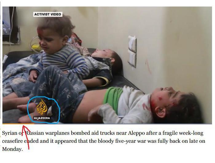2) где доказательства, что это видео имеет какое-то отношение к тексту на неизвестном сайте? Попробуйте подумать головой - откуда взялись дети в гумконвое, который шёл, если верить инфе, в осаждённое селение, а не из него.
