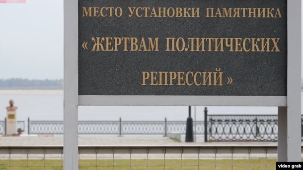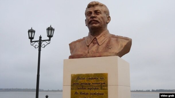 Но недавно всего в нескольких десятках метров от памятного знака жертвам сталинских репрессий появился новенький постамент с бюстом ... самого Сталина.