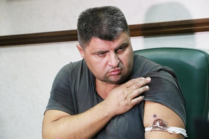 Олег Дутов демонстирует ранение в руку. Фото: Znak.com