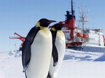 Два пингвина встречаются после многомесячной разлуки. Протискиваясь сквозь толпу сородичей, они зовут друг друга яростными криками: о, удача, оба выжили и отыскались в этой галдящей толчее. Пингвины трясут головами, кладут клювы друг другу на плечи и кружатся в супружеском танце.