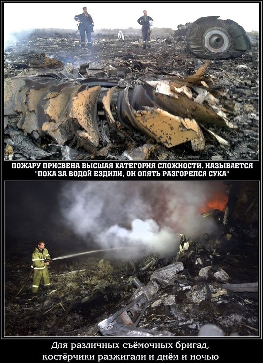 Второе. Какой идиот специально поедет на своём Буке в соседнюю республику сбивать самолет, чтобы в нём оставить свои осколки? Чтобы его среди бела дня все видели? И чтобы самолёт мог упасть на территории России?
