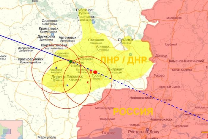Для тех кто желает сопоставить эти координаты – в 20 км южнее находится село Амвросиевка, являющееся одной из основных опорных точек повстанцев. Западнее находится Донецк, восточнее – Марииновка. Каким же образом украинский Бук оказался без боевого охранения в 20 километрах за линией фронта?