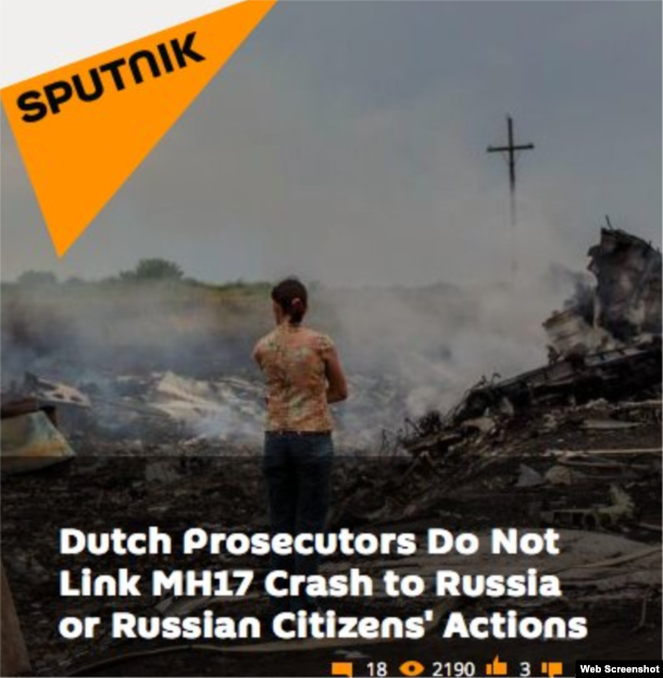 Журналисты команды EU East StratCom Task Force отмечают, что несмотря на это, прокремлевские СМИ утверждали, что голландские исследователи не связывают Россию со сбитием пассажирского самолета рейса MH17.