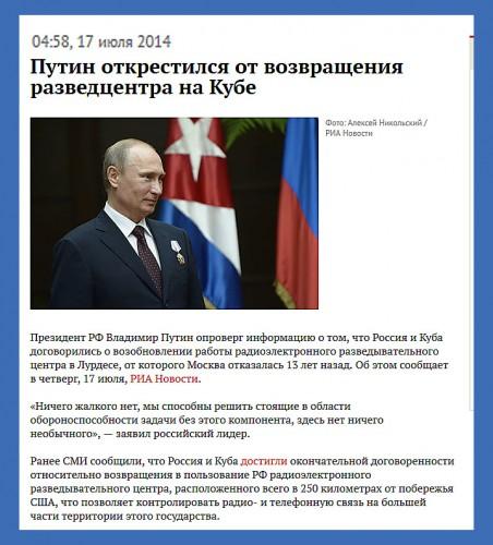 «С этого ключевого поста прослушивания Советы следят за коммерческими американскими спутниками, связью военных и торговых судов, а также космическими программами НАСА на мысе Канаверал. С Лурдеса Советы могут прослушивать и телефонные переговоры в Соединенных Штатах» (Из совместного доклада госдепартамента и министерства обороны США, 1985 год).