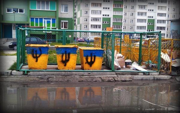 на украине покрасили мусорные баки в цвета государственного флага...