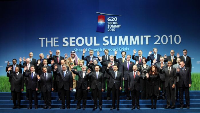 Безусловно, обладая всей этой информацией, на встрече в Южной Корее президент США много шутил и улыбался во весь свой белозубый рот. Не забыл он пожать множество рук расквартированных в Сеуле и тоже чрезвычайно веселых американских солдат. Обама явно старался казаться жизнерадостным и полным сил. Однако на общей фотографии лидеров двадцатки и других участников встречи Барака скромно поставили почти с самого края.