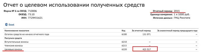 2. Не иссякает и поток удивительных и таинственных «целевых взносов». Их кто-то накидал на 425 миллионов рублей за 2015 год.