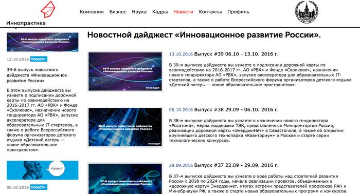 В разделе «наши результаты» на сайте фонда сообщается, что проведен некий Конгресс и реализованы некие проекты для тех же самых госкомпаний — Роснефть, Транснефть и Росатом. Никакой конкретики. Единственные регулярные и конкретные обновления по деятельности фонда — это публикация дайджеста новостей обо всем на свете. Все, больше ничего не происходит.