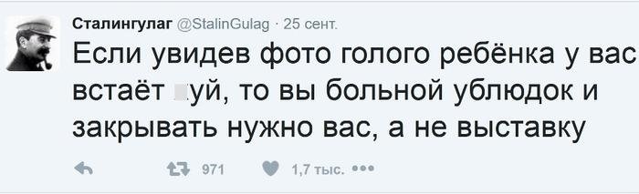 Когда мочой обливают фотографии — это что, борьба за нравственность, что ли? Вообще не надо общественным организациям бороться за нравственность в искусстве. Искусство имеет достаточно фильтров из режиссеров, художественных руководителей, критиков, души самого художника. Это носители нравственности. Не надо делать вид, что власть — это единственный носитель нравственности и морали. Это не так.