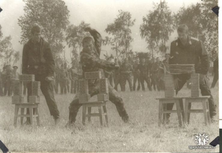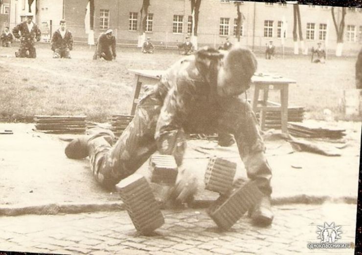 Петров вместе с Долото после года службы, спер на хоз. дворе дубовую бочку, которую они спрятали в техничке, закрыв листами рубероида. (Батальону была придана рота обслуживания и рота охраны. В караул и на кухню они не ходили). Спорили с прапорщиками и офицерами на 50 марок, что Ваня пробьет бочку указательным пальцем. Ставилась бочка на стол в курилке, ведрами наливалась вода и Ваня размявшись, пробивал пальцем дубовую стенку и била струя воды. Потом шли в чайную и гуляли с лимонадом, пирожными и любимым всеми, арахисом в шоколаде.