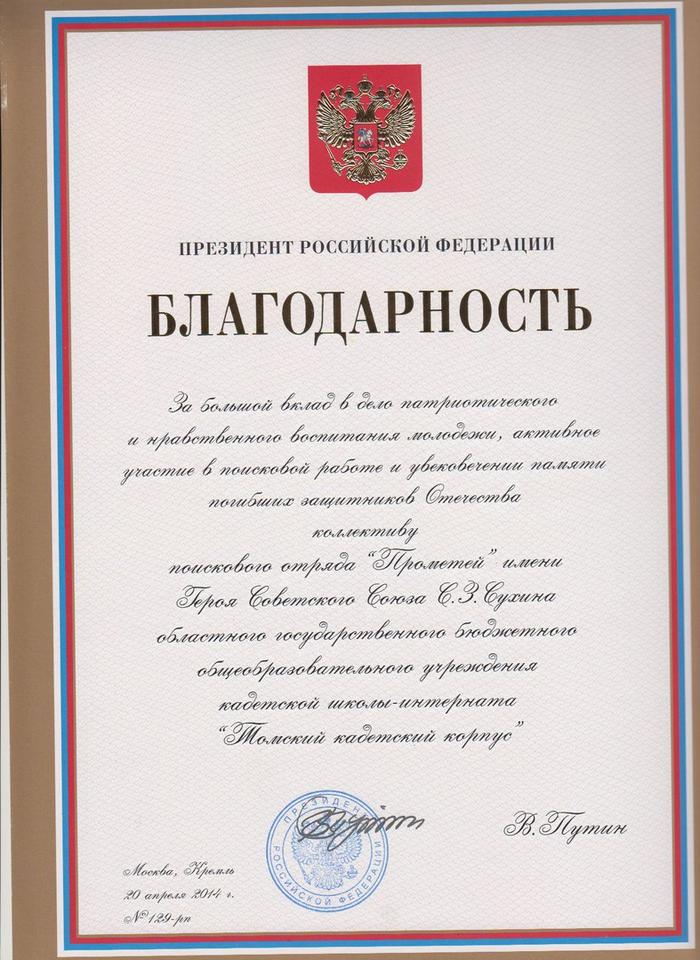 Томские кадеты получили это письмо через три месяца после празднования 30-летия поискового отряда "Прометей". Оно просто пролежало забытым в областном департаменте образования...