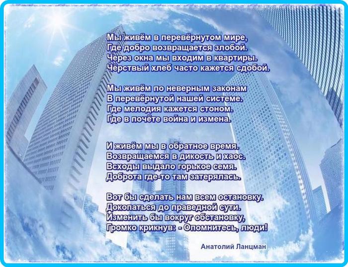 Это прямой призыв одуматься...Только я думаю, когда обращаются ко всем, то получается ни к кому...у нас всегда так. И в этом причина застоя...Понравилось стихотворение, Анатолий!