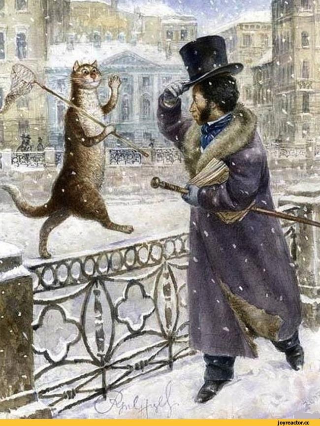 Прогуливаясь вдоль Фонтанки, почтительно раскланивался Александр Сергеевич Пушкин с Ученым Котом, намурлыкавшим ему Лукоморье:)