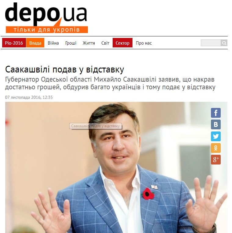На Россия 24 в ленте..Сакашвили подал в отставку..