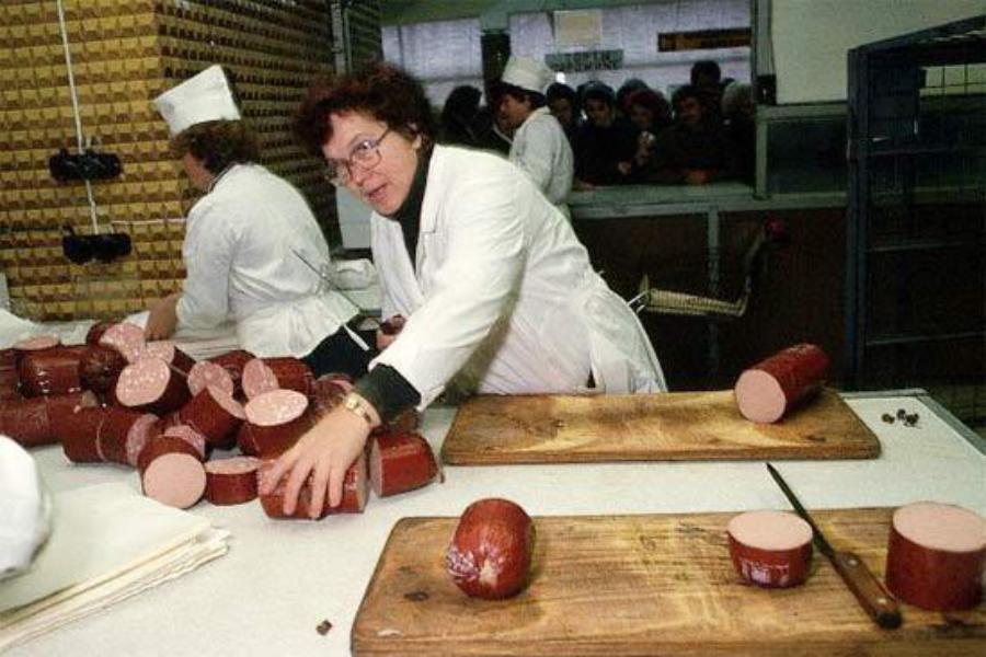 Очень популярны были сосиски с колбасами. Только надо понимать, что колбасы это были - не сервелат.
