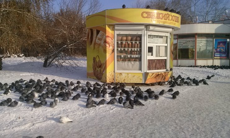 с работы вышли вечером - ветрина, буран, метет, все в снегу, согнувшись ползем домой...капец.