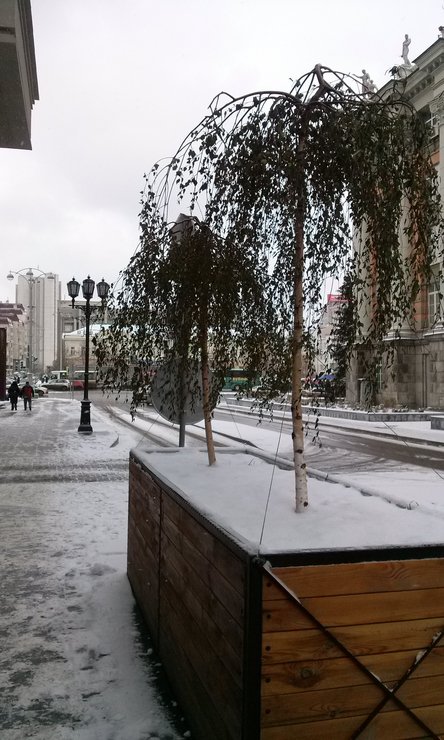 а у нас на работе есть березки, на которых до сих пор еле тронутые желтизной листики, такие зеленые чуть тронутые желтизной...