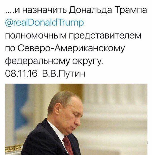 А вот зачем ваша, российская вакханалия по поводу победы Трампа я тоже не пойму. Вот что Трамп уже наговорил: "Не стоит боятся больших перемен, которые могут урезать Величие США во всем мире. Мы единственная Великая держава, которая всегда стремится к демократии и правопорядку. Сирийский конфликт должен решится в ближайшее время, я уверен, что мы сможем одолеть ИГ совместно с Европой и покажем своё единство всему миру. Если Россия аннексировала Крым, ведет войну на Донбассе, то о каких снятиях санкций может идти речь? "