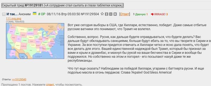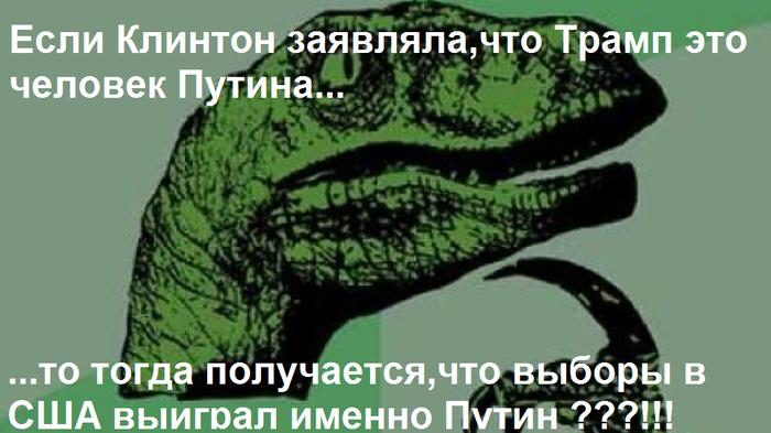 А если серьёзно - невменяемая агрессивная Клинтон была бы полной катастрофой для всего мира. Так что на этот раз американцы выбрали меньшее зло (выбирая, как на всех последних выборах, между сэндвичем с дерьмом и клизмой).