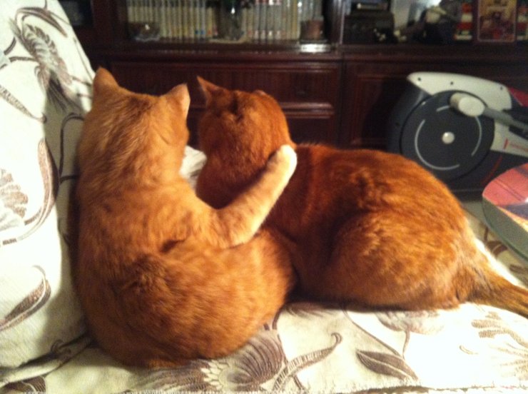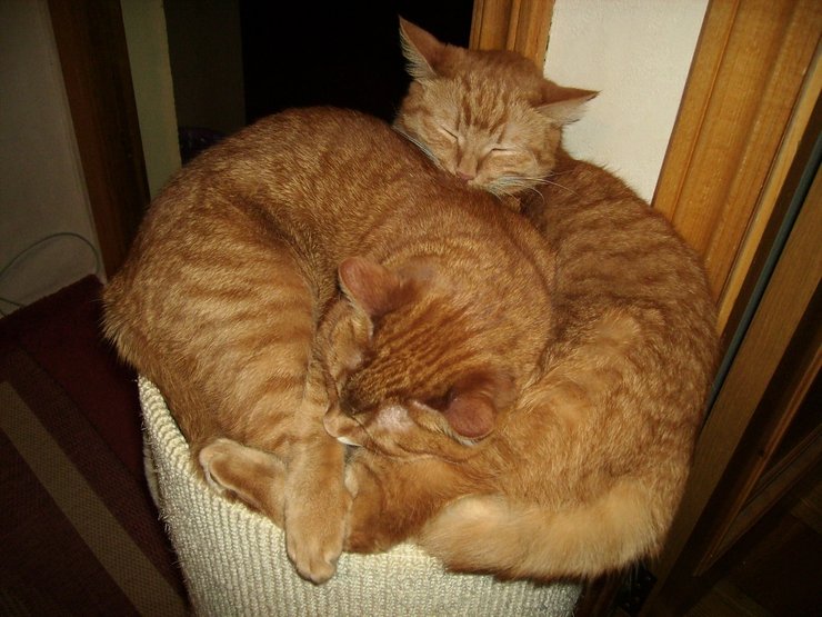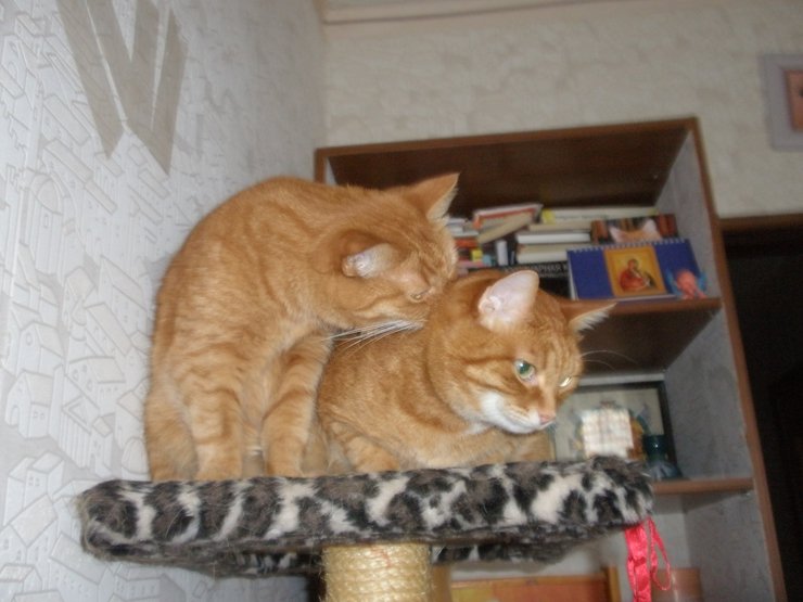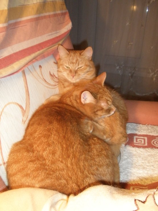 Нет, не братики. Всех притащила с улицы младшая дочка. Рыжих она завела,когда жила отдельно от меня, а потом притащила мне, несмотря на то, что у нас уже жила своя кошка-Ксюша и тайский котик-Максим,которого она отбила у какого-то алкаша в метро...Он был совсем больной,мы его выходили,ему уже 13 лет, а рыжикам по 10.