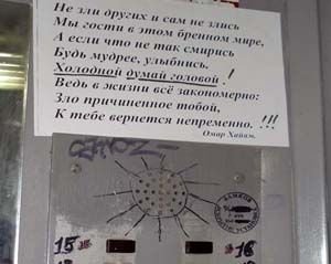 Хотя нет, кое-какой прогресс все-таки наблюдается. Вчера в лифте повесили изречение Омара Хайяма насчет того, что все мы гости в этом бренном мире, а если что не так – то надо смириться и все такое. Честно слово, у меня и фотография есть. Этим своим Хайямом они типа намекают, что жаловаться бесполезно, лучше займитесь релаксом и повышением духовности. Тут я согласна, при том духе, что у меня в квартире, духовность – это особенно актуально.