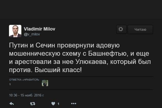Ранее стало известно, что президент РФ Владимир Путин освободил главу Минэкономиразвития от должности в связи с утратой доверия. До этого Басманный суд Москвы отправил Улюкаева под домашний арест до 15 января 2017 года. Экс-министра обвиняют в вымогательстве взятки в размере $2 млн за положительную оценку его ведомства в сделке по приватизации "Башнефти".