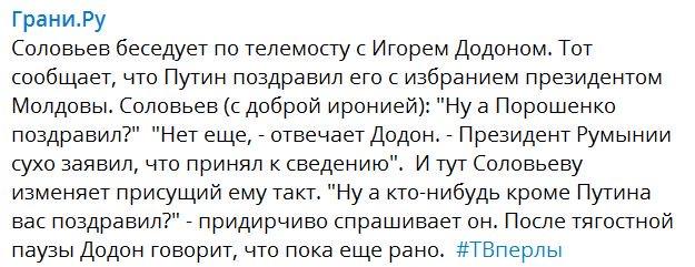 Однако в нынешних условиях Додон со своими "объяснениями в любви" России - как собаке пятая нога...Чего с ним, и с "пророссийской Молдавией" теперь делать ?!