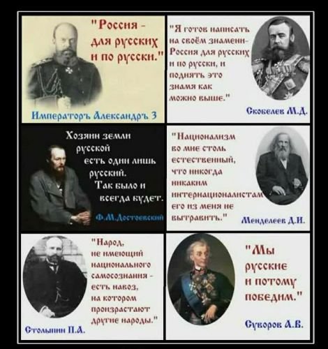 Разумеется, русские люди заинтересованы в сохранении и укреплении России, ее территориальной целостности, процветании. Просто, возрождая традицию, мы должны сделать Россию русским государством, покровительствующим русской культуре, русскому семейному бизнесу, русской науке. И здесь не мешало бы четко и ясно выделить принципиальные моменты.