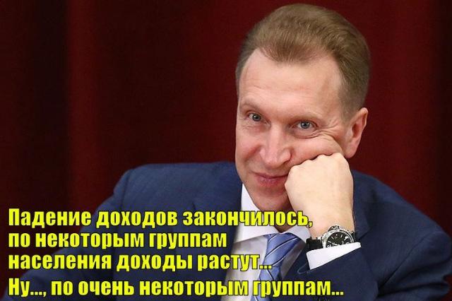 Шувалов увидел окончание падения доходов россиян.....Оно может закончится лишь с отстранением от власти таких , как Шувалов.