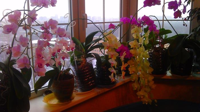 в пятилитровых-старые орхи, старше10 лет, но у них и цветов по три-четыре ветки