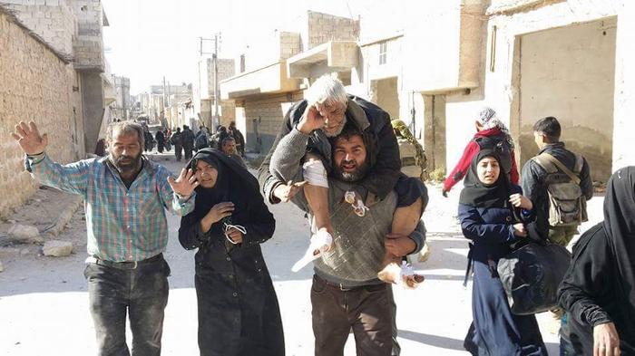 Тысячи беженцев уходят из бандитской части Алеппо.