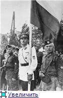 Хотя известно и использование власовцами бело-сине-красного флага. Например, на параде 1-й Гвардейской бригады РОА в Пскове 22 июня 1943 года. Но это было скорее исключение из правила. В подтверждение вышесказанного приводим фотографии парада в Пскове и подъема бело-сине-красного флага при построении РОА в Мюзингене (1945). (с) Давайте посмотрим на фотграфии с парада.
