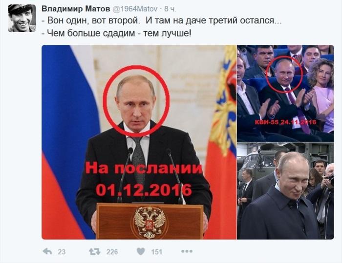 И дело здесь даже не только в том, что у нас не один Путин, а тысячи или даже десятки тысяч путиных. Различающихся, естественно, некоторыми личностными особенностями и взглядами, но по сути все они – путины. Путин для нас вообще не имя собственное. Это имя нарицательное.