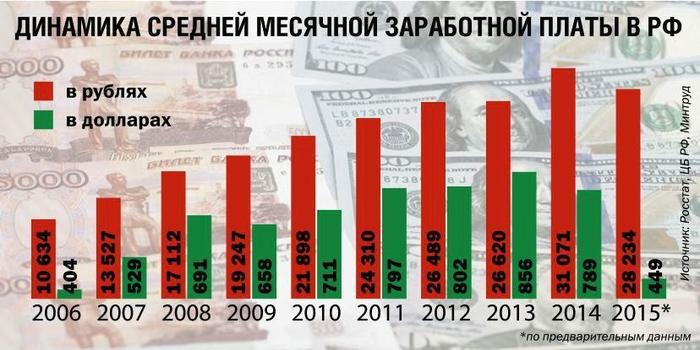 Когда 2008 курс доллара был 24 руб., то в 2014 когда средняя з/п в России была 38тыс, то в долларах это было бы 1583 доллара.