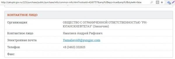 Конкретное лицо, заказавшее живодерство — Ямалиев Андрей Рифович Электронная почта YamalievAR@yungjsc.com Телефон +8 (3463) 332615