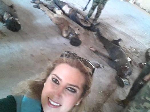 Знакомьтесь, это про-ассадовская "журналистка" Кинана Аллуш делает свое селфи на фоне только что расстрелянных.
